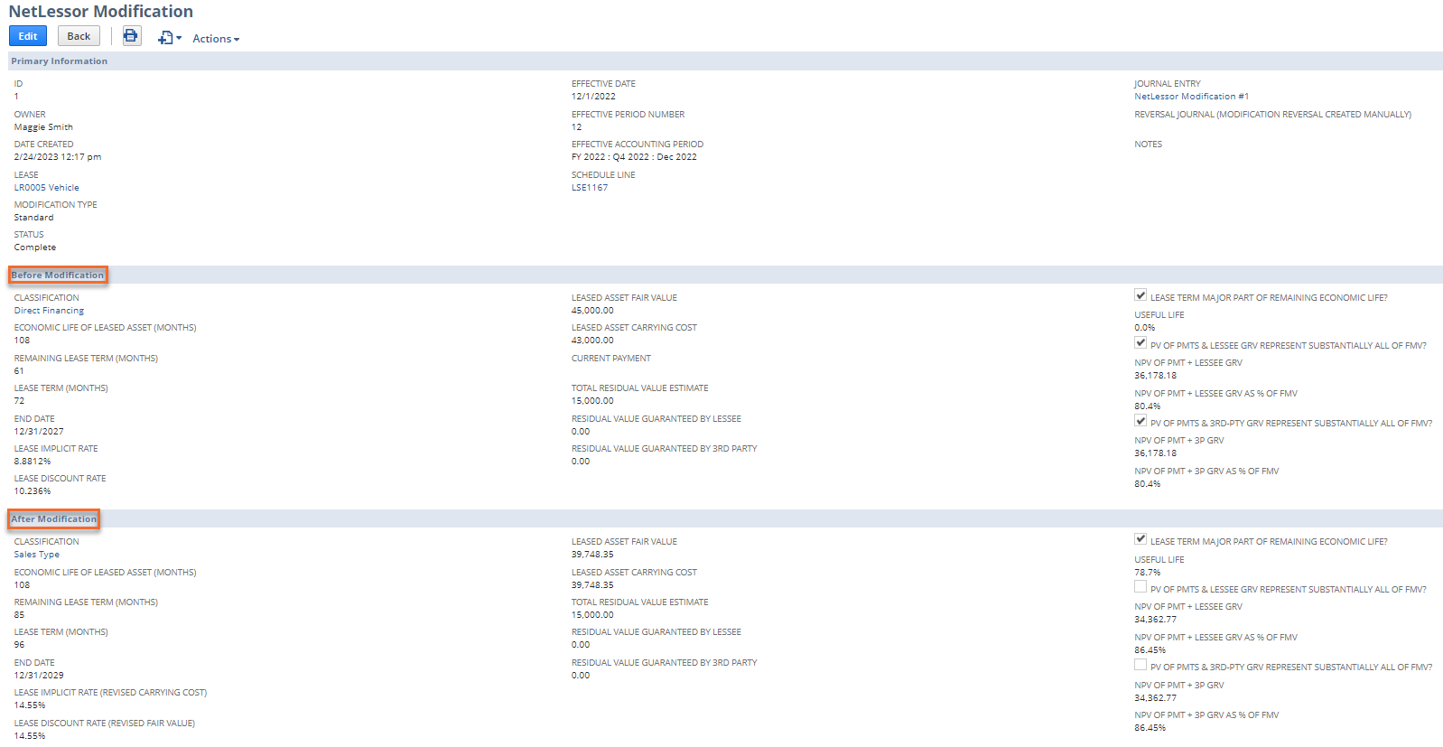 To see a before and after picture of the lease, click View next to the lease. This will show the details of the lease before the modification and after the modification.