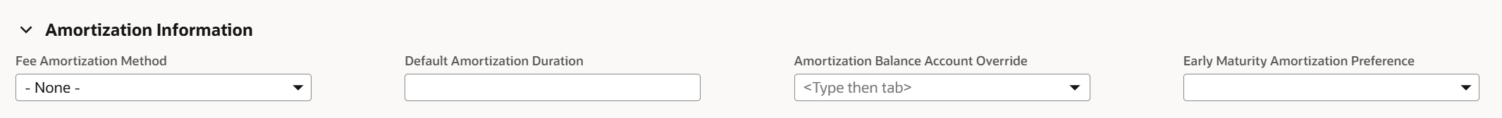 - Next, the Amortization Balance Account Override field can be used if the amortization balance account for this payment should differ from that selected on the loan type. This is usually the case when you have multiple amortized payments.