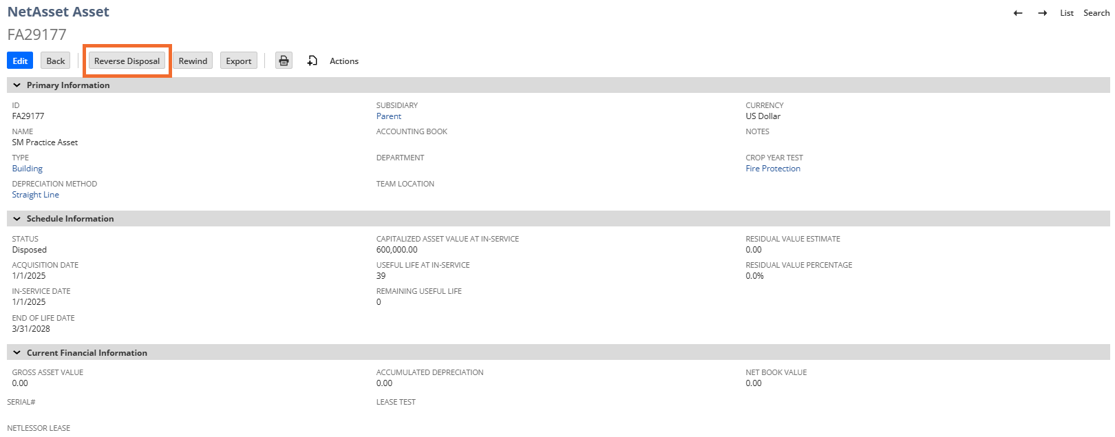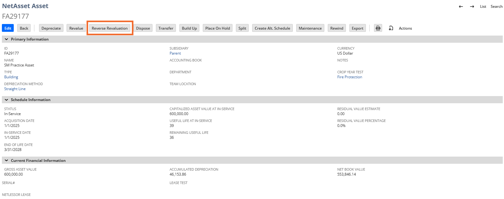 - If the revaluation or disposal happened in the current period, there should be an option to Reverse Disposal or Reverse Revaluation