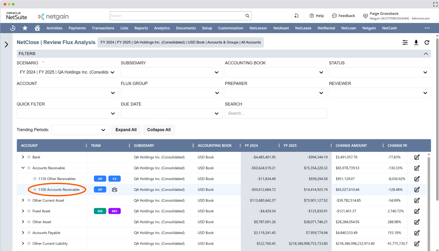 If revenue is up 15%, you can instantly break that variance down by customer, separate invoices from credit memos, or filter by custom segments that match your organizational structure.