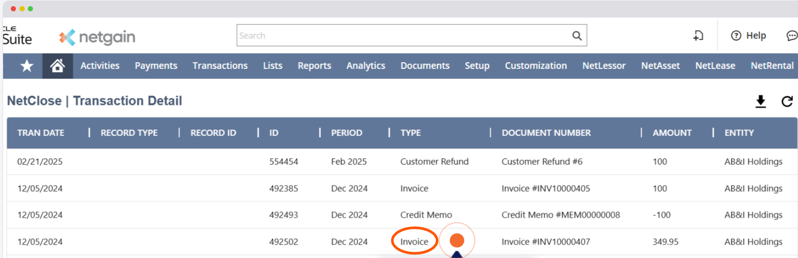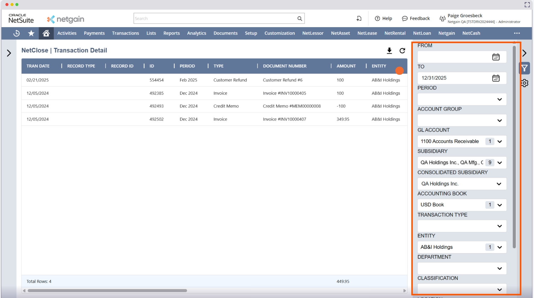 5. To drill in further, you can select one of the balances, and it will take you to a pre-filtered transaction detail showing all the transactions that make up that balance.